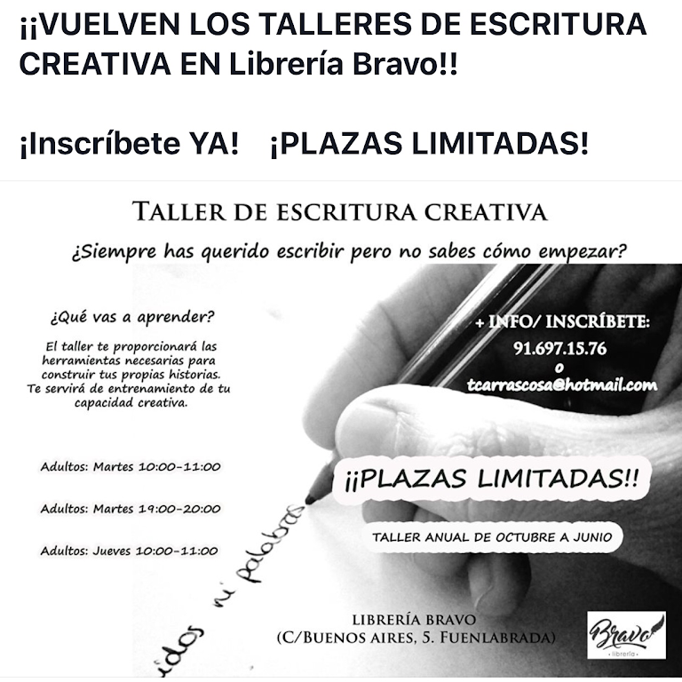 Comienza nueva semana de talleres culturales en Librería Bravo!!